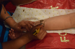 This is a close up shot of henna on the bride’s hand. This image is also taken by Nicole Chan at the bride’s henna day. On this day, the bride wears henna on her hands, arms and feet. This is a tradition to wear before the wedding day which symbolically implies as part of getting the bride ready before her big day. This particular image inspired me because the photographer has taken the picture so close to the hand so they can capture every detail in the image. I like the use of depth of field in her work which would help me develop my response to this image.